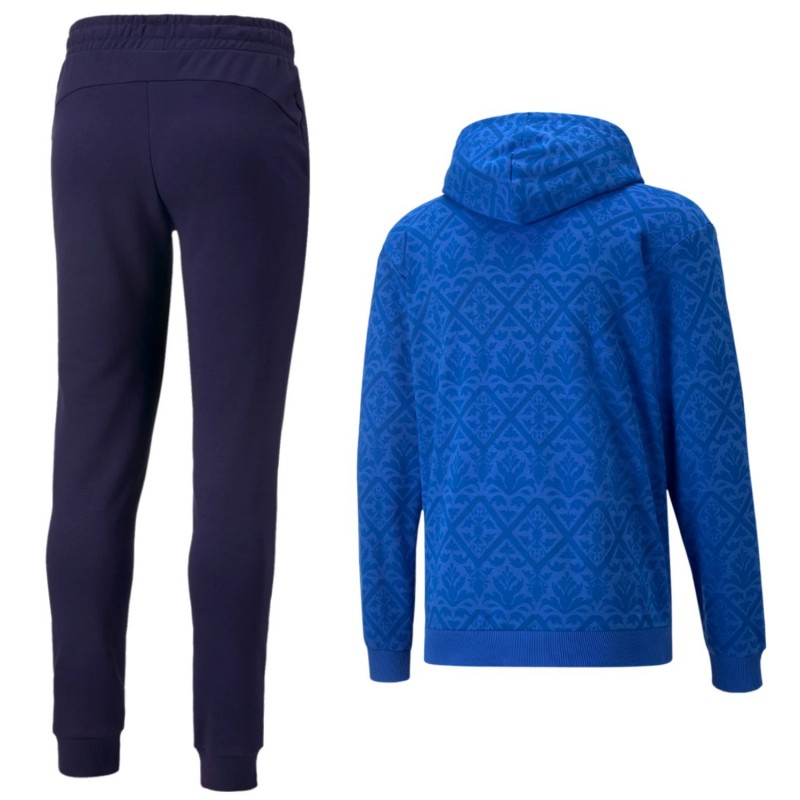(features renaissance-looking designed hoodie and matching sweat pants)